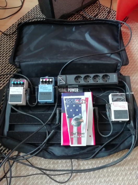 Je nach Geschmack noch ein paar Effekte dazu, (bei mir TU2 Boss Tuner, Bad Horsie, Patriot-Morley Wah, DD3 Boss-Delay, CH1 Boss-Chorus und fertig ist der Sound, für alle Lebenslagen.